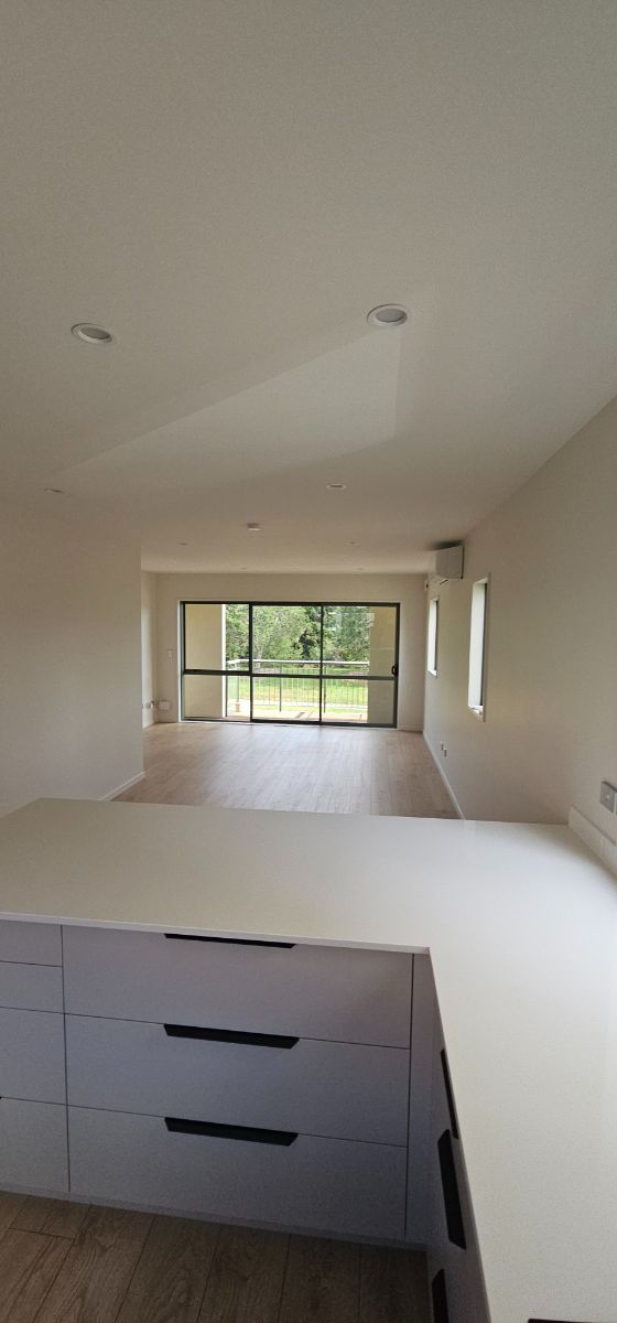 Our role covered a complete internal strip-out of water-affected materials and coordination of black water decontamination, followed by reinstatement of ceilings and wall linings, and a full internal redecoration. We supplied and installed new kitchen cabinetry with an engineered stone benchtop, new appliances, and LED lighting, along with new laminate and carpet floor finishes to restore durability and amenity.